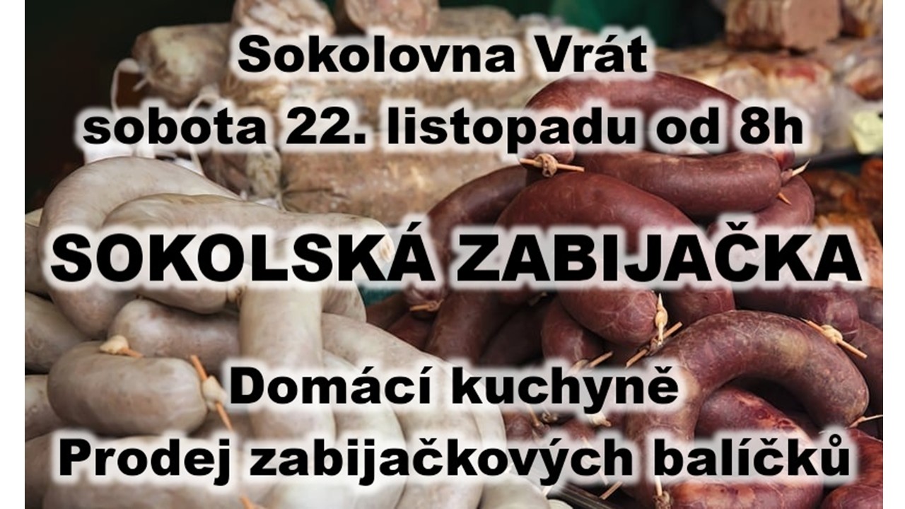 V sobotu 22. listopadu 2025 se v Sokolovně na Vrátě koná prodej zabijačkových specialit. Akce začíná v 8:00 hodin a můžete se těšit na domácí kuchyni a širokou nabídku tradičních pokrmů.